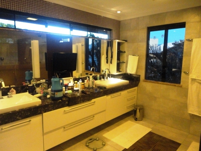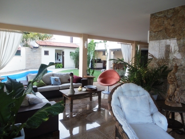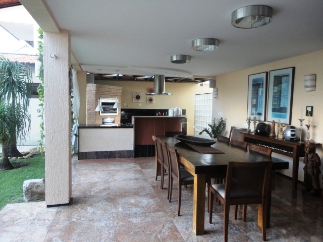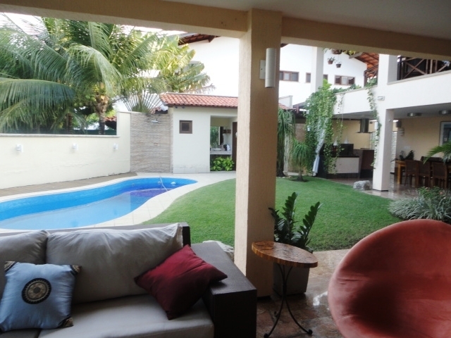 Belíssima casa duplex em condomínio fechado com 600m² de área construída, 800m² de lote, 7 suítes, home cinema, gabinete, varanda com churrasqueira, piscina individual, móveis projetados.
