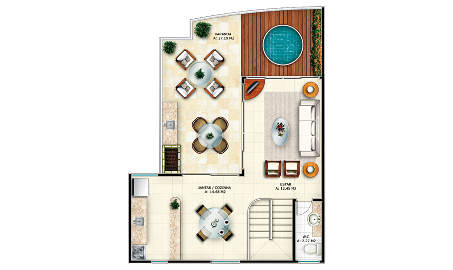 Nada como mergulhar fundo na sua vida. Por isso, o Beach Place foi planejado com cascatas, fontes, redários, pontes e um exclusivo paisagismo tropical.