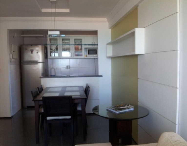 Excelente apartamento vista mar com 60m², divido em 02 quartos, gabinete, wc social, cozinha americana, área e wc de serviço, Projetado.
