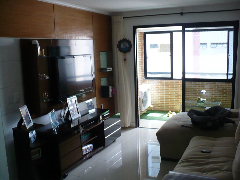 Apartamento com sala em L com 2 ambientes, varanda, 3 quartos, sendo 1 suíte, DCE, banheiros com blindex e armários, todo no porcelanato, cozinha planejada, quarto de vídeo e som. 2 vagas cobertas.