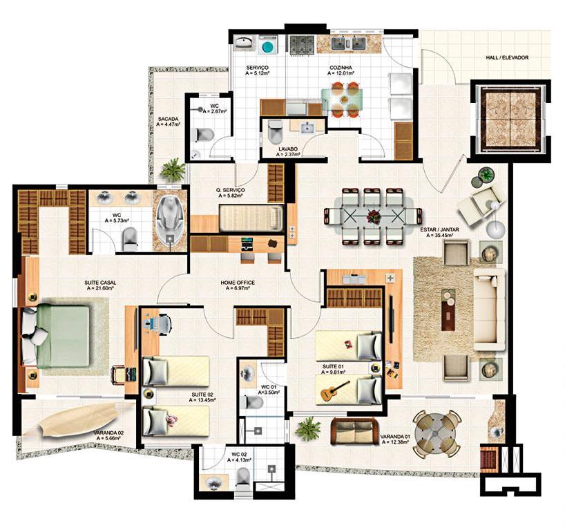 Área privativa de 167,12m²