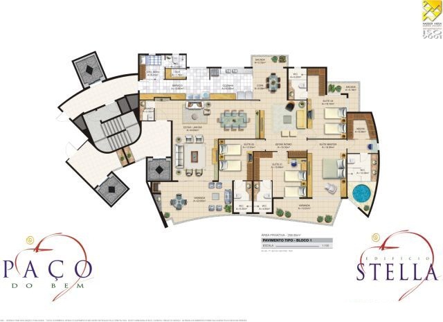 Área privativa de 258,85m², 4 suítes, com closet,Todas as suítes avarandadas,Suíte máster, com hidromassagem, Estar íntimo, Sala com 3 ambientes, Ampla varanda com churrasqueira, 4 vagas na garagem (mais depósito), Elevadores sociais privativos e climatizados, Elevador de serviço tipo maca.