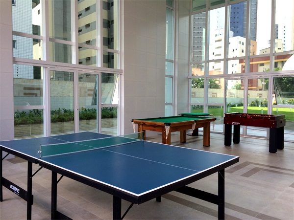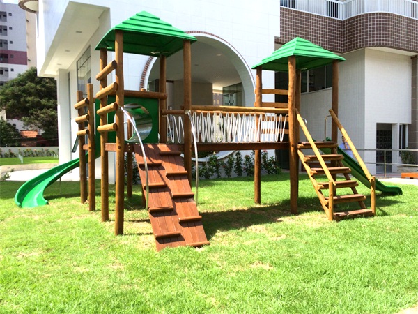 Área de lazer com: Piscinas (adulto e infantil); Deck com churraqueira e espaço gourmet; Brinquedoteca; Quadra de squash; Fitness center (completamente equipado); Sauna à vapor; Quadra poliesportiva; Playground; Salão de festas com pé direito duplo, isolado acusticamente e climatizado (inclusive equipamentos).
