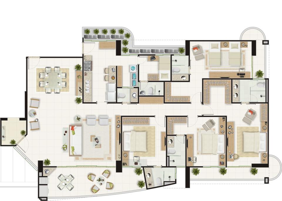 Apartamento de 237m² com 4 suítes, mais lavabo e varanda gourmet com churrasqueira ecológica e forno de massas; Instalações para ar-condicionado, tipo Split, em todas as suítes e na sala (exceto equipamento); Água quente à energia solar nos chuveiros das suítes; Medição individual de água, gás e água mineral, combatendo o desperdício; Sanitários especiais com bacias sanitárias de duplo acionamento (descarga de 3 ou 6 litros); Central de água mineral, com ponto na cozinha (exceto equipamento); Sistema predial coletor de óleo de cozinha -solução sustentável, garantindo o descarte apropriado sem que seja despejado na rede de esgoto; Sistema triturador (equipamento instalado) de resíduos orgânicos na cozinha -eliminando o mau cheiro e a presença de insetos, colaborando com o meio ambiente, facilitando a coleta do lixo reciclável;