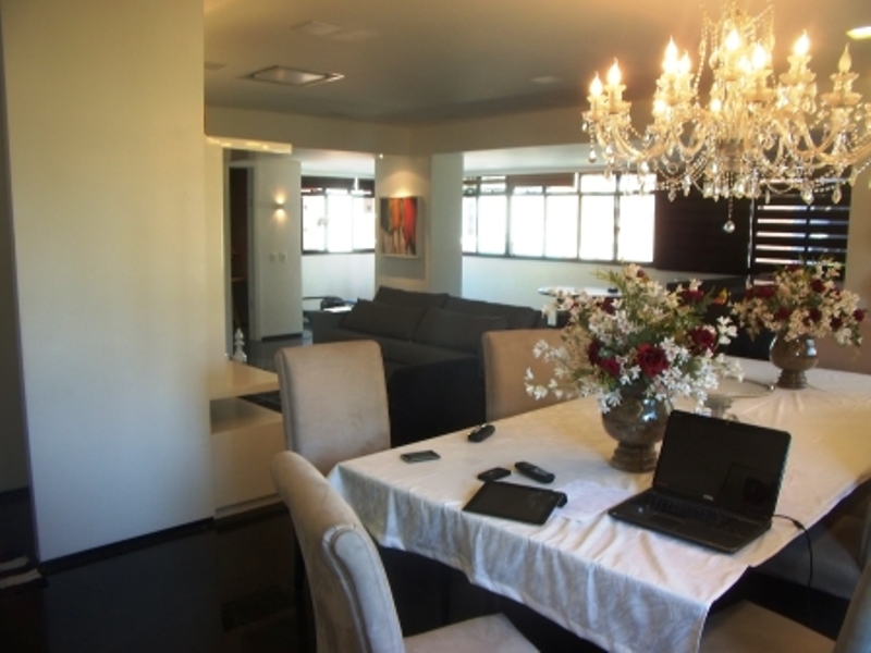 Excelente apartamento no Meireles com 260m²; 1 por andar; sala p/ 3 ambientes, nascente total; 4 suítes + lavabo + star íntimo, cozinha; área de serviço; dependência completa de empregada + despensa; adega c/ churrasqueira a gás; projeto de iluminação; água quente; sensores de energia no lavabo e no hall particular; 100% no granito; todo projetado e decorado em alto padrão