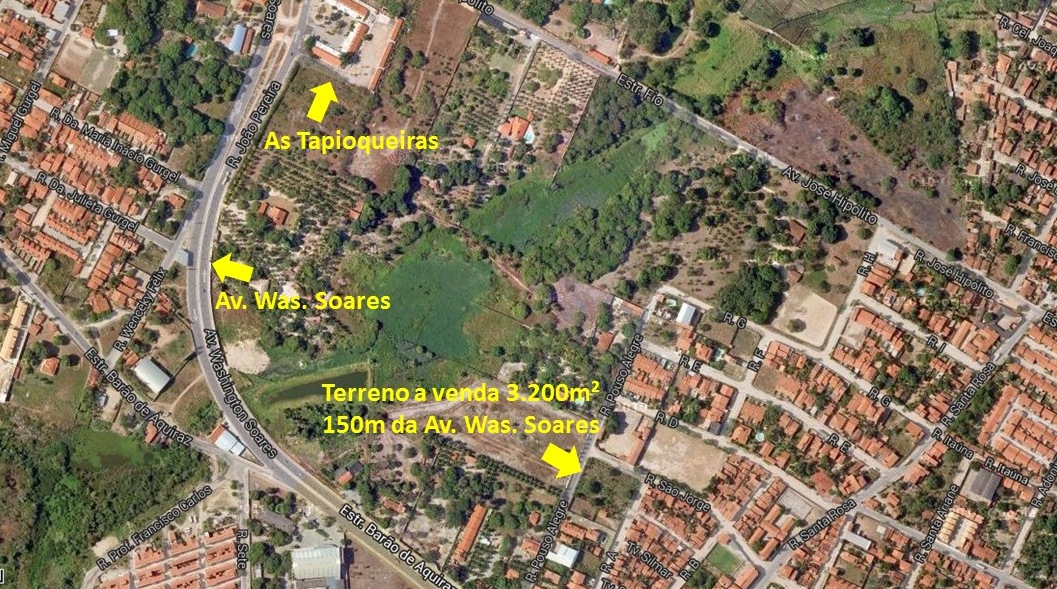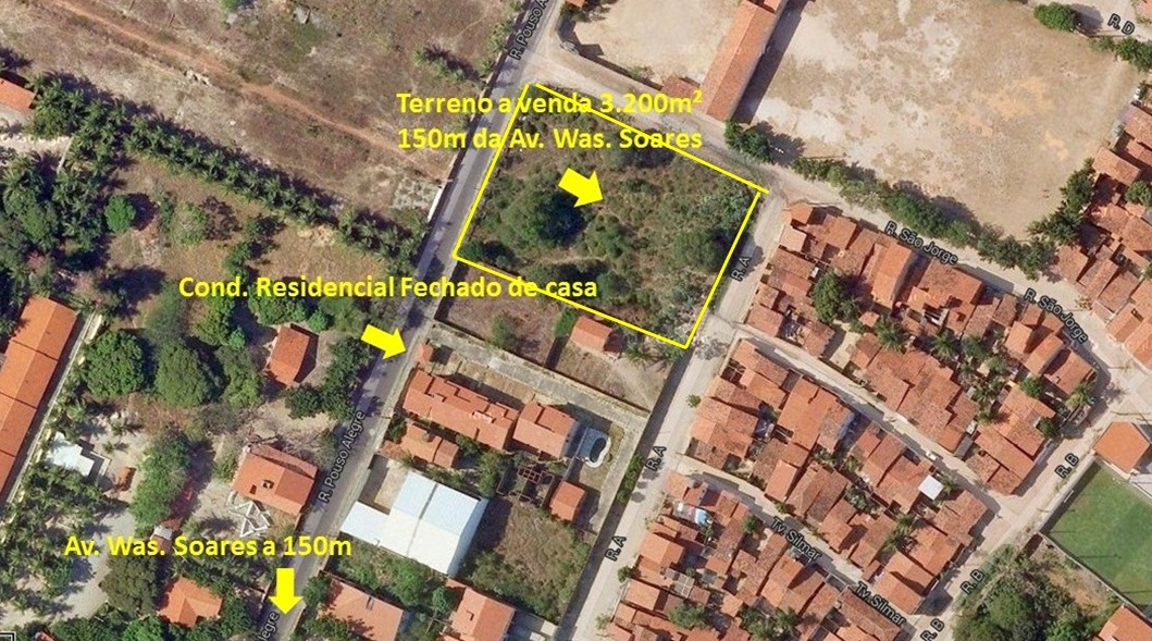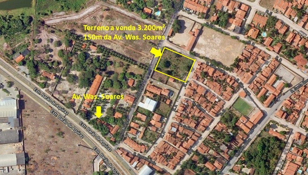 Excelente terreno de esquina, nascente, com 03 frentes, a 100m da Av. Was. Soares / Estrada do Fio, localizado na Rua Pouso Alegre.